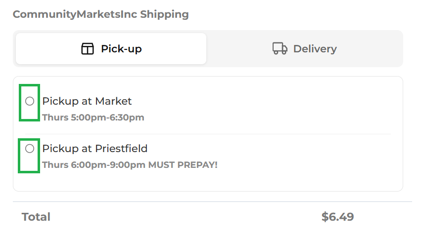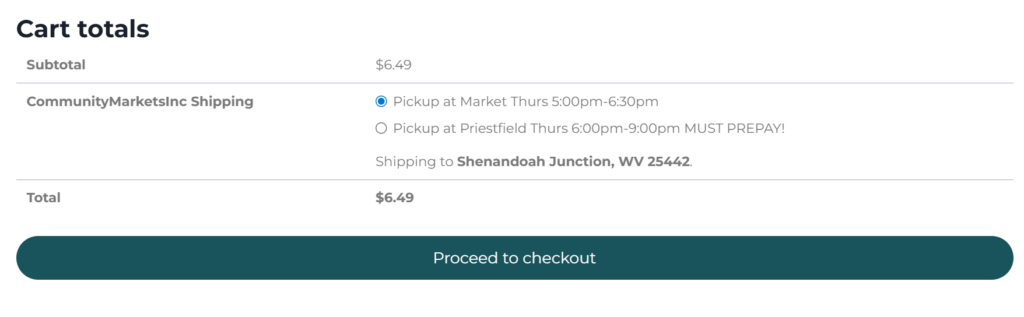 Our goal is to make ordering and receiving local food simple and convenient — whether you’re picking up at the market, stopping by Priest Field, or enjoying the ease of home delivery.