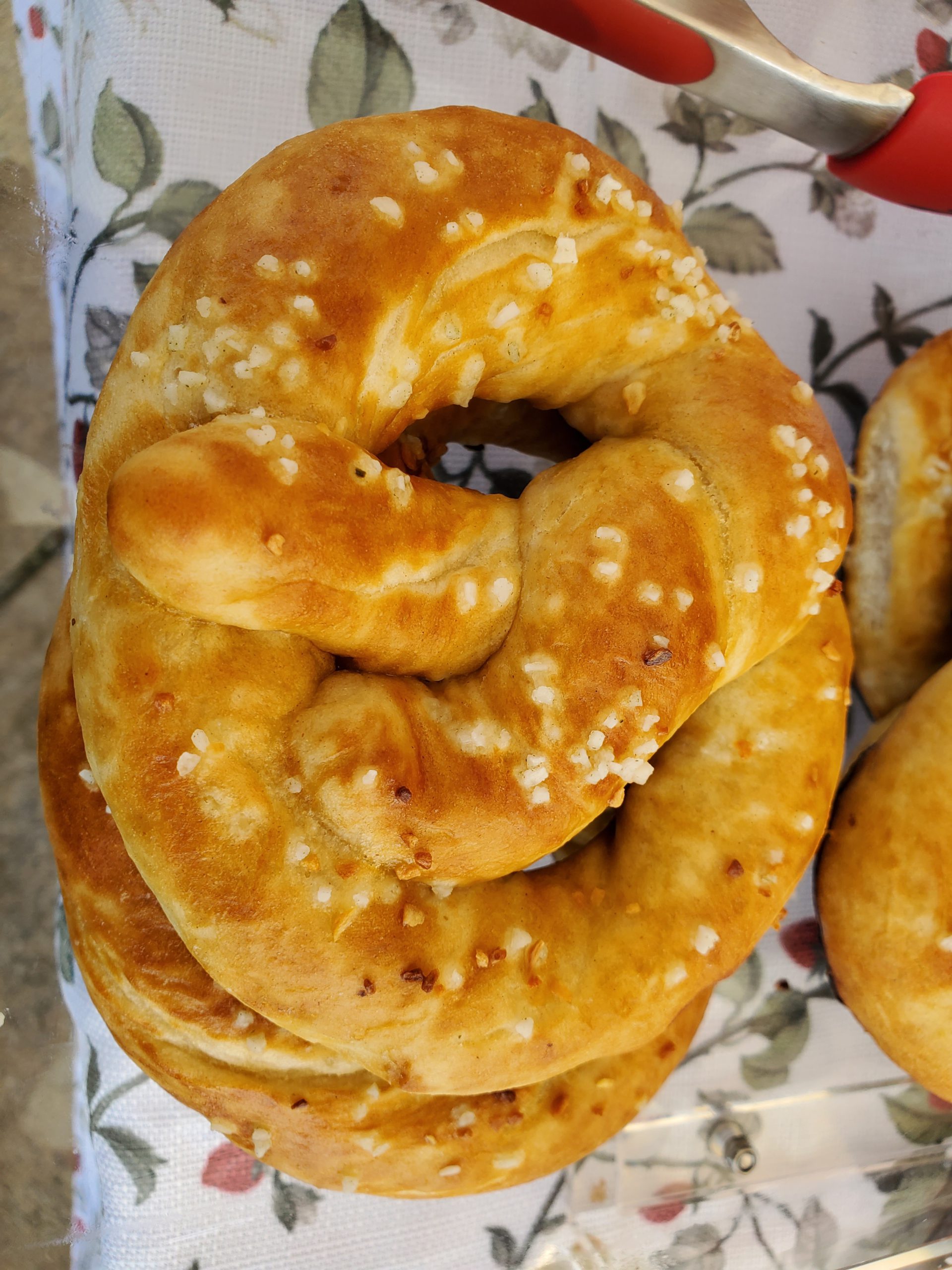 Our Aunty Brina’s Pretzels sprinkled with minced garlic and ramp finishing salt and brushed with butter.
