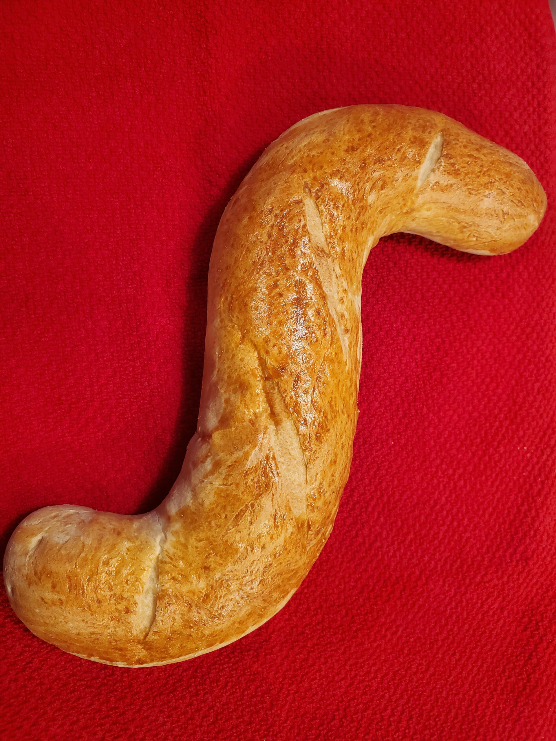 Our French bread shaped into a twisting snake.